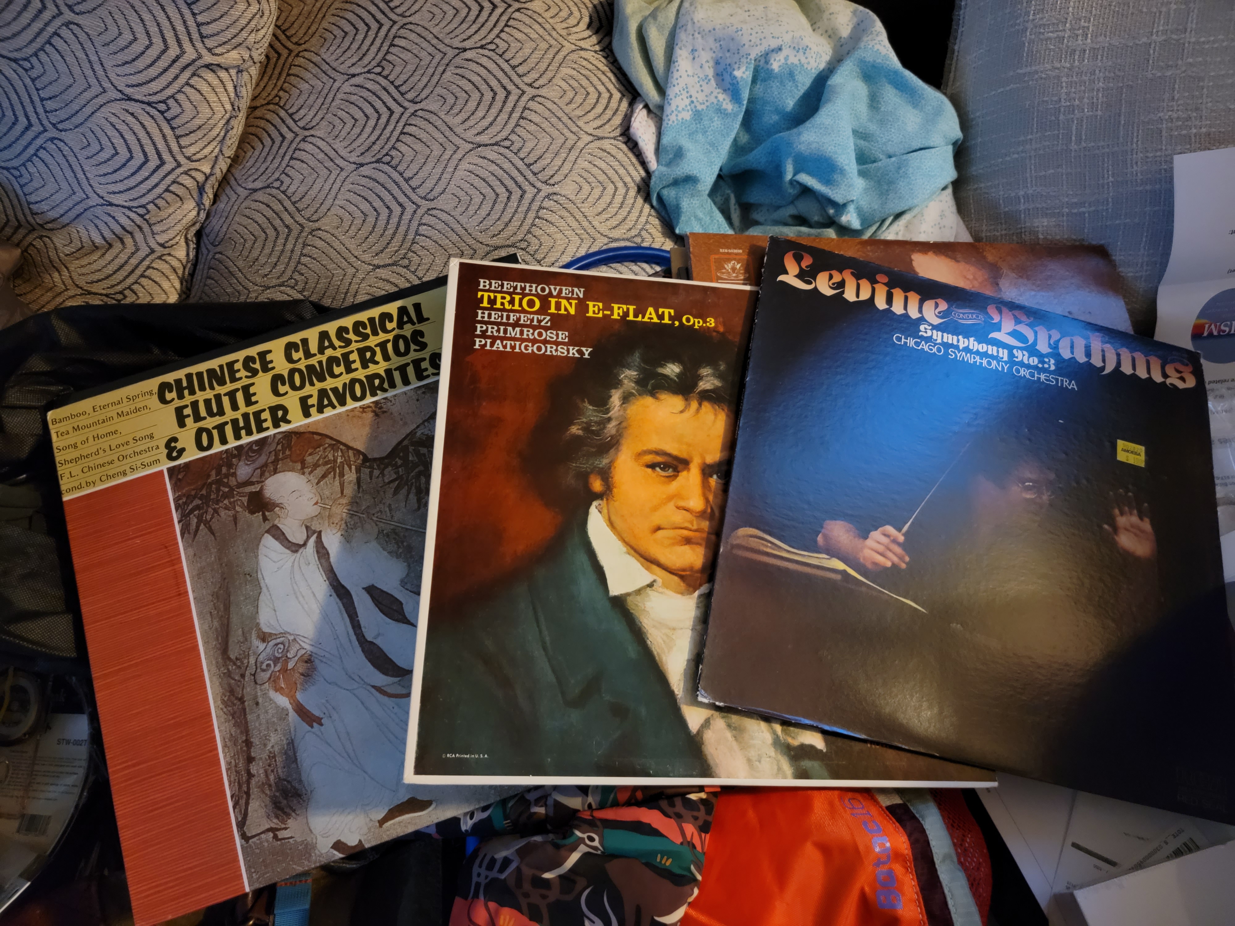Edit: After a thorough cleaning the older albums all still pop with some frequency. I intend to hit them with some cleaning solution and a microfiber cloth and see if that alleviates some of it. Also the Tchaikovsky Symphony no. 6 is only the sleeve, it actually holds The Irish Rovers’ Tales to Warm Your Mind.